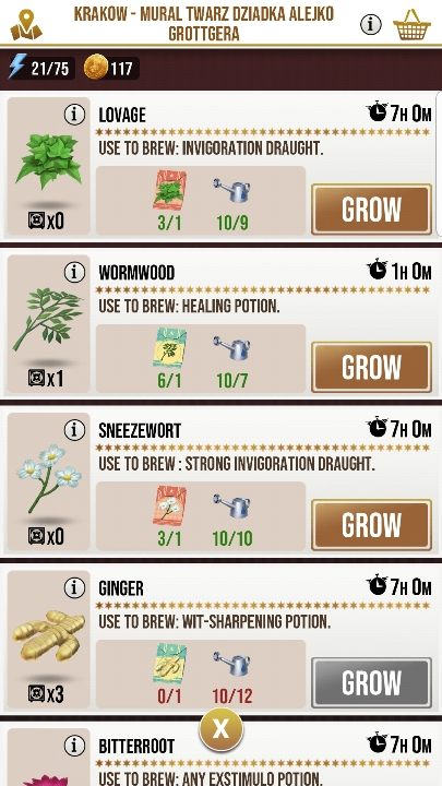 Planting plants is very simple. All you have to do is click on a free pot and then choose the plant you want. In order to plant it, you need to have all the necessary raw materials. Each plant has a specific period of time during which it will fully grow (from a few minutes to seven hours).