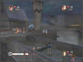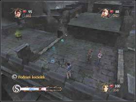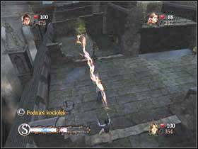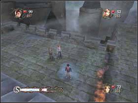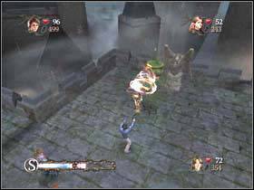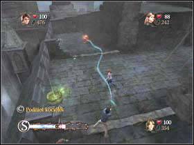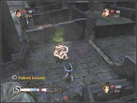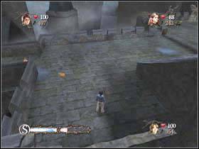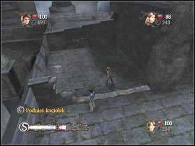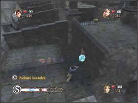 Now go downstairs and get to this place. Use the cauldron to destroy the wall on the left and then another on the left.