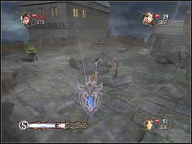 Go straight ahead and then turn to the right. Put out the fire and use cauldrons to destroy four statues. You will get your sixth mini-shield.