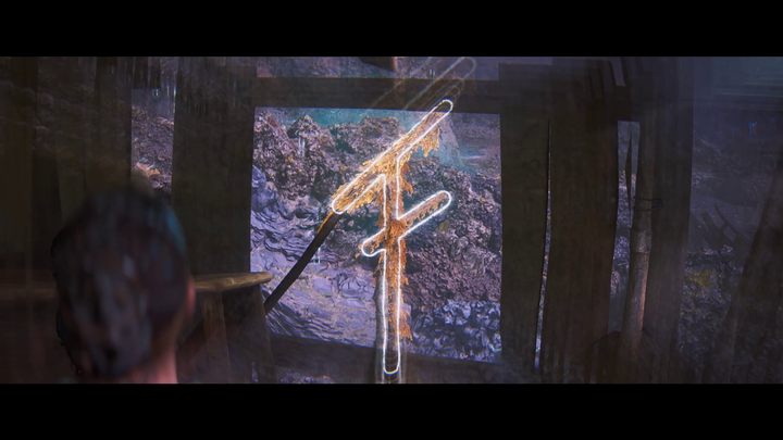 - The road will lead you to a ruined hut on a cliff. Get inside it. Look through the window to find the final part of the symbol. After activating it, you can safely return to the now opened gate.