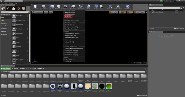 - Unpack the content into: C:\Program Files\Epic Games\HelloDevKit\HelloNeighbor\Plugins (the default directory).