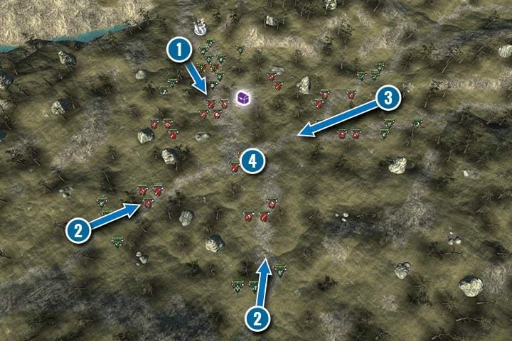 Orvin is at the center of the battle (4). He will not leave his position and he waits until you attack him. Bring as many troops as possible into the area before you start the attack. Ballistas and mages will be very useful here. He has a strong attack, so watch out for your heroes. Sylvius cannot immobilize him, but you can surround him with infantry and archers. Once the ring has been created, he won't have any opportunity to escape. Then the archers and projectile shooting units will easily eliminate him. Now it's time to get rid of the rest of the enemy units to win the mission.