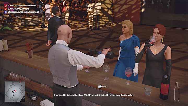 You can immediately use your new disguise to poison Tamara when she appears in the wine tasting room (make sure you have lethal poison and a bottle of blue wine).
