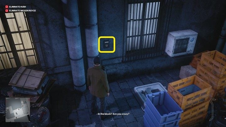 You'll find Hush's private office on the top floor of the homeless shelter. You can infiltrate it from the inside or from the outside - through the balcony. Exterior door access code: 2552.