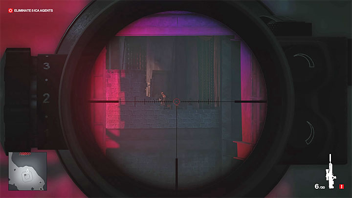 Agent Tremaine is the only sniper among the ICA agents on the map in Berlin. At the beginning of the mission, he is in the sniper nest located on floor 2 of the bikers' building (point 58 on the map). Tremaine will start tracking Agent 47 if an alarm is triggered but also once activate one of the laser traps in the radio tower(point 4 on the map).