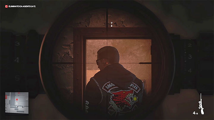 Aim your sniper rifle at the area marked in the image above. This is the bikers' building sniper nest (point 58 on the map).