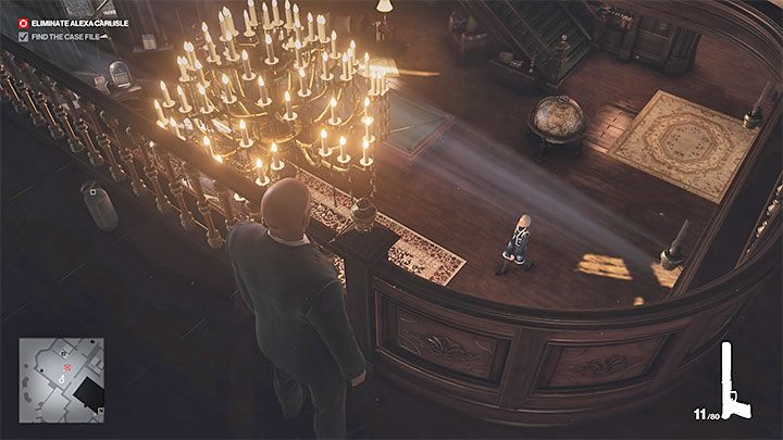 The main building of the mansion has many chandeliers that can fall. Just hit the rope on which the chandelier hangs with a gun. You can easily kill Alexa by dropping the chandelier in the library(point 17 on the map).