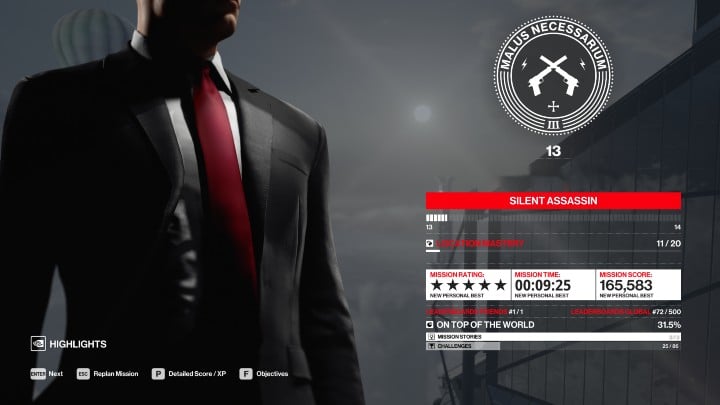 Depending on how you completed a mission, the system implemented in Hitman 3 will take into account all the actions you performed and give you a rating. After completing a mission, you will receive the appropriate point score and rating, such as Apprentice Sniper, Expert Marksman, or the valuable distinction of Silent Assassin.