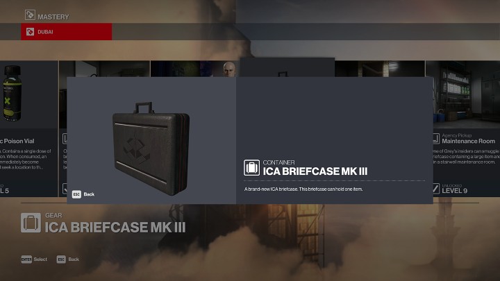 A special briefcase in which you can hide a single item. The briefcase allows Agent 47 to move around the map with an unauthorized item such as a sniper rifle.