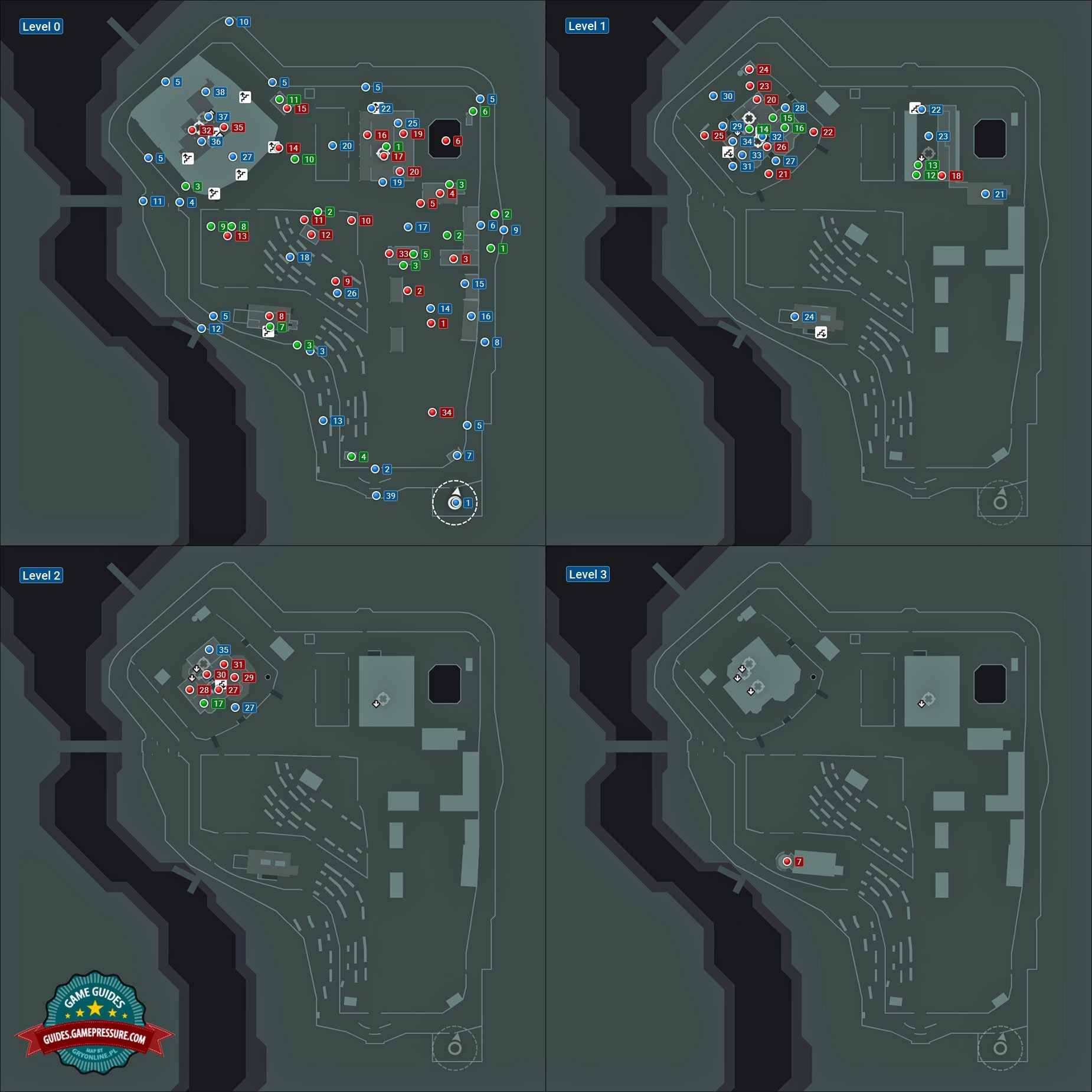 You can get here using the stairs found outside (blue 31 on the map) or inside (blue 32 on the maP) the main building. There's at least 1 soldier here.