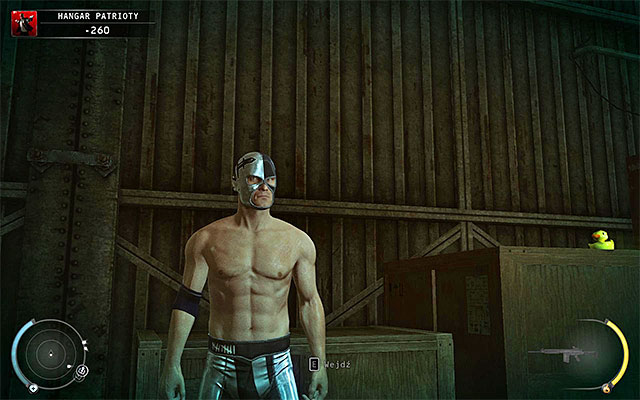 Now put on his costume. Note - this challenge will be accomplished only if none of enemies in the hangar is alerted.