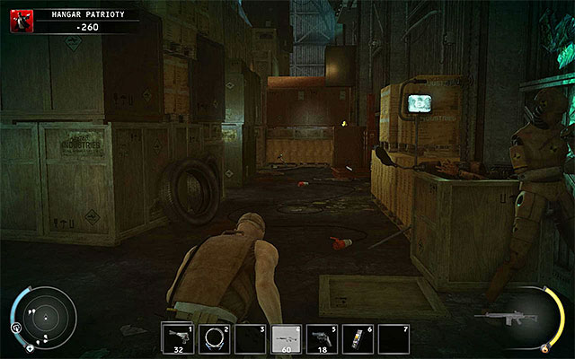 Repeat actions described above: thrown any object and hide behind crates near the trailer. This time your actions should distract Patriot himself (screen above). Notice - if the plan didn't work then stun another regular enemy and try again after hiding his body.