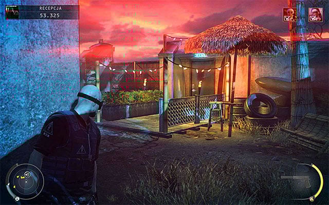 The door leading to the next stage can be found to the right of the gas station (screen above). Sadly you can't use the exit right away, because Agent 47 will have to unlock the door first and just as in the previous stage he will become vulnerable for a few seconds.