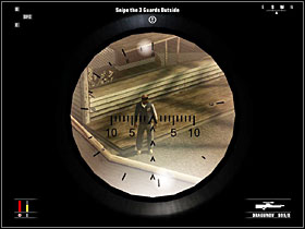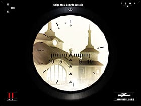 Sneak through the big room - first go forwards, then right. Enter the toilet. Sneak to the gangster in there and grab him to use as a shield. Drag him to the next room and shoot all the people in there. Go up the ladder and pick up the suitcase with a rifle. Take Dragunov out of it and stand by the window. You have to take out three guards: one is on the roof, second is near the big wheel, and the third is patrolling the alley below. When you're done with them, leave the room and go down using the pipe.
