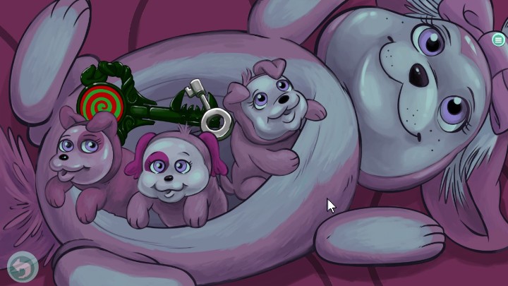 Next, take some things from the bed. Click the pink toy and the game will zoom in. Take the two keys.