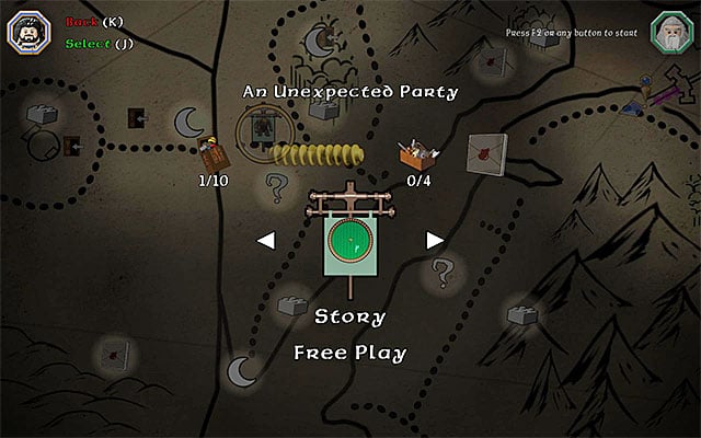 A VERY IMPORTANT piece of information, connected with finding collectibles, is that you, unfortunately, need to unlock two bonus characters, on your own. This is so, because the two do not you in the character list automatically, while completing the successive stages. The two characters in question are Saruman and Sauron. Their whereabouts have been marked on the map presented on this page.