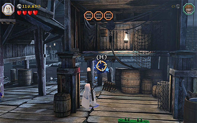 Way to obtain: While chasing after Bolg, stop in the part of the docks shown in the above screenshot. Switch to the goblin here and grab on to the interactive wall, thanks to which you will reach a place with the minikit.