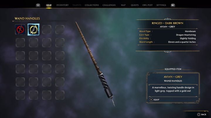 - Wand Handle - the Avian - Gray is a cosmetic item, you can choose it after unlocking a new wand in the main storyline.