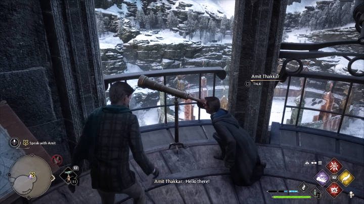 Head to the top of the Astronomy Wing and talk to Amit, a Ravenclaw student.