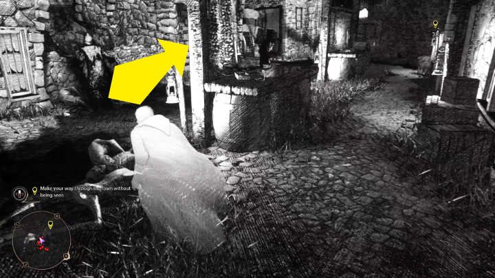 In the next area, the best way to stay hidden is to wait for the moment when 2 enemies that are more or less in the middle turn left and start moving that way. Use the created opportunity and continue forward.
