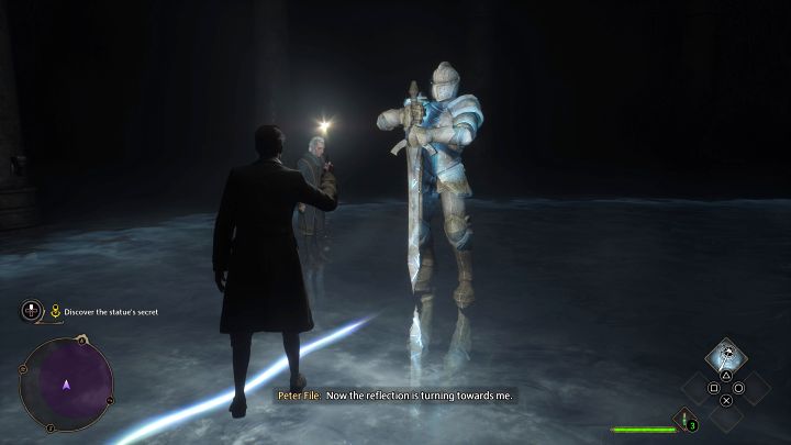 In the new area, you'll have to complete the second puzzle involving guard statues. Cast Lumos and stand in the place shown in the screenshot - to be exact, you must stand in a place where 3 lines converge. Only then you can activate all 3 of the sentries.
