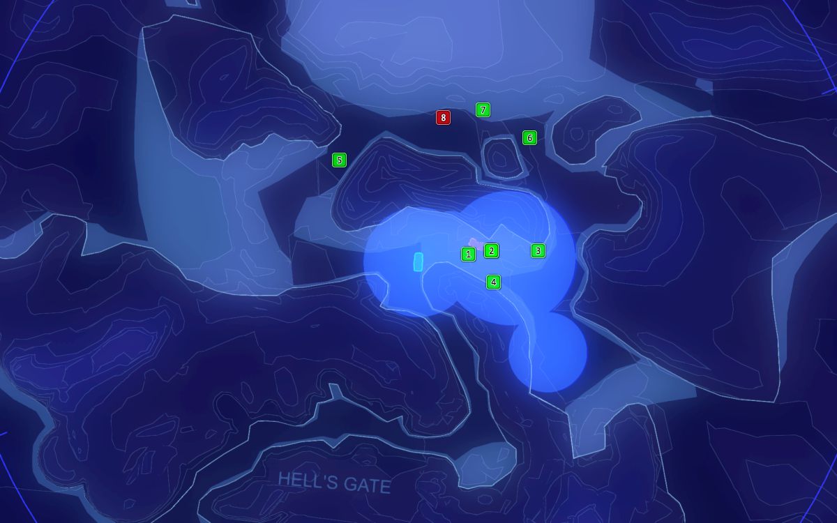 - deploy both groups at both sides of the rock separating your base from the enemy ([5],[6]).