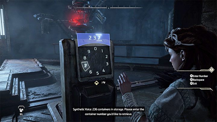The correct combination is 237. Once you enter it, a capsule will appear containing Aloy's clone, Beta.