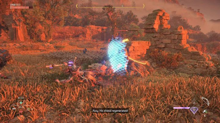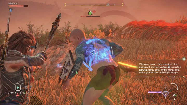 If you have the Resonator Blast skill unlocked already, you can make things easier and use it to deal significant damage to the boss. Attack him in melee with your spear and if he lights up blue after one of his strong attacks (R2 - above image), quickly hit him with an arrow.