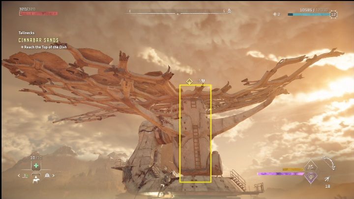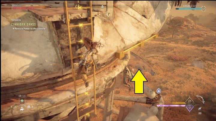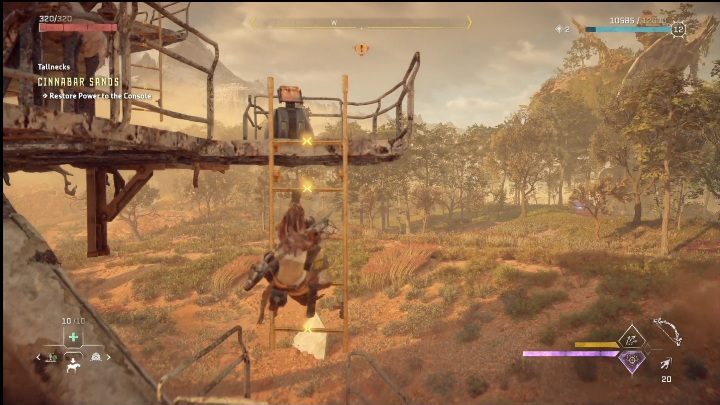 A ladder will appear and you must now climb it. This shouldn't pose you any problems. The ladder leads straight up, with only a single gap between the steps. Aloy will bypass it without any issues.