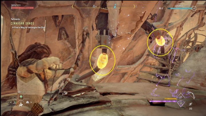 Time to head further up. Look at the yellow objects pictured above. Draw your bow and shoot two elements blocking the entire construction.