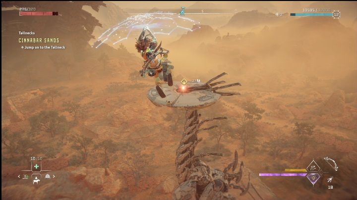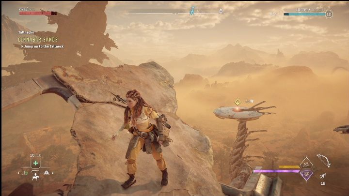 Now it's time for the final step which should lead you to the Tallneck. Climb onto the structure's highest point, wait for the machine to come nearby and jump. You must use the Shieldwing to reach it.