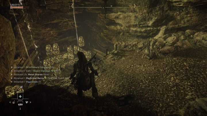 Eliminate the 3 machines in the mine. Bristlebacks are prone to Shock, so use the Tripcaster to get rid of them quickly.