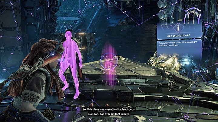 A lot of climbing and numerous small environmental puzzles await you while traversing the cauldron. The puzzles involve using pressure plates and Aloy can step on the first one (pictured above).