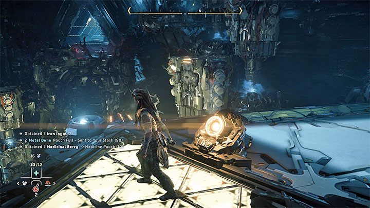After the battles, collect loot from all the defeated machines and resume following Zo. Your destination is the Sacred Cave.