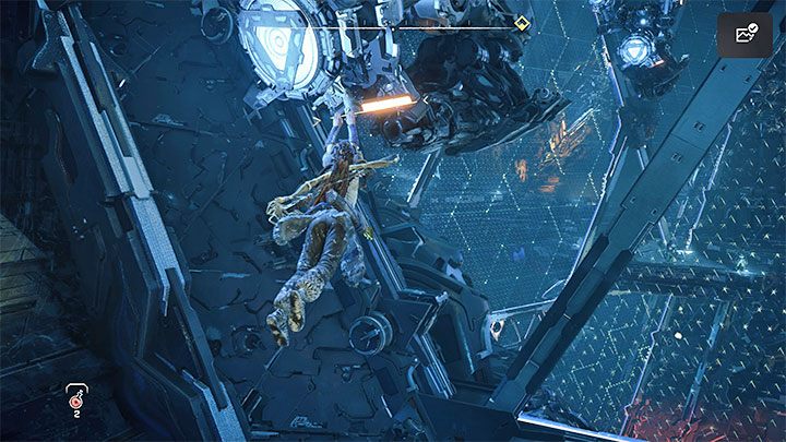 In the next part of the cauldron, you have to climb by using the yellow interactive elements in the area. Your goal is to reach the next network link and once again use the spear.