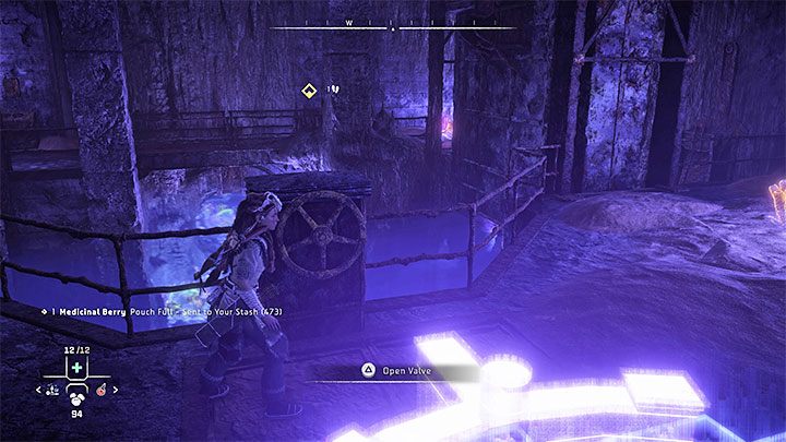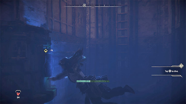 Locate the ladder to exit the water and reach the first valve. After turning the valve, approach Firegleam which blocks your way to valuable loot. Jump into the water on the other side of the firegleam and swim to a large underwater area.
