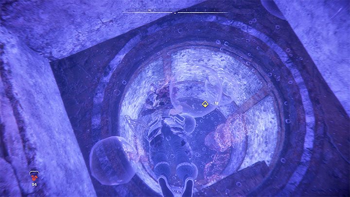 Remember - time you can spend underwater is limited. Swim to the bottom of the shaft, locate the Compressed Air Capsule and once you pick it up, return back to the surface.