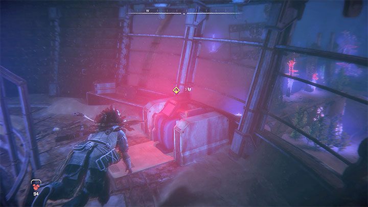 Continue along new underwater corridors (there is numerous loot to collect along the way) Follow the new corridor and swim to the red console shown in the picture. Activating it will drain most of the water from the central area.