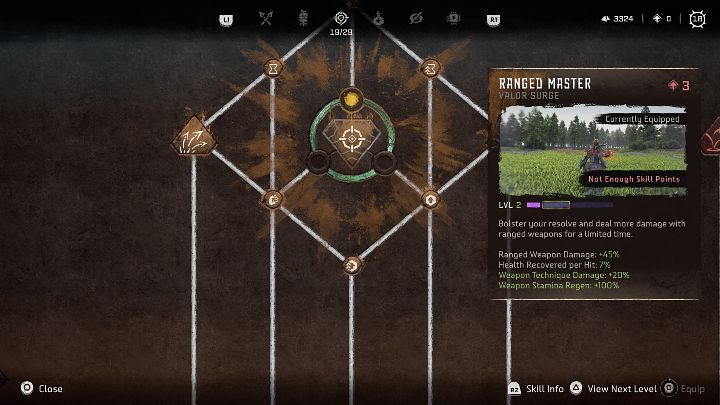 You can unlock Valor Surge in Horizon Forbidden West in individual skill trees - two skills for each. It should be noted here that before you can unlock the first Valor Surge skill, you will have to first spend skill points on the smaller nodes that are associated with it.