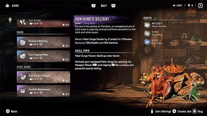 - order food from cooks found in many settlements and other allied locations - the better the food, the higher quality meat you must deliver,