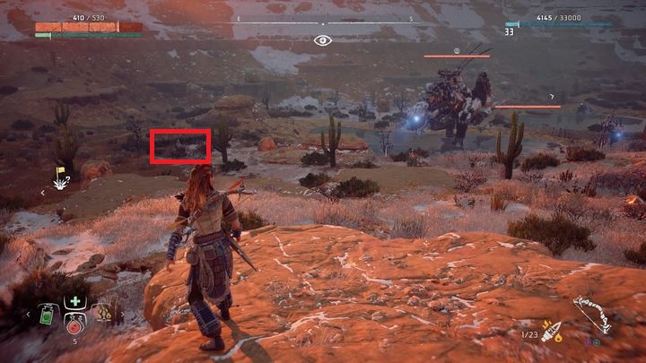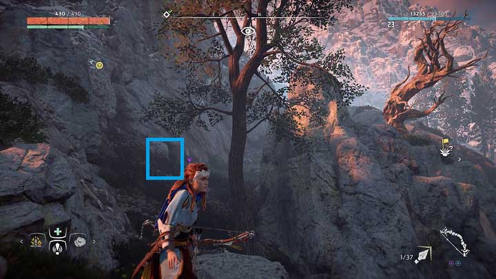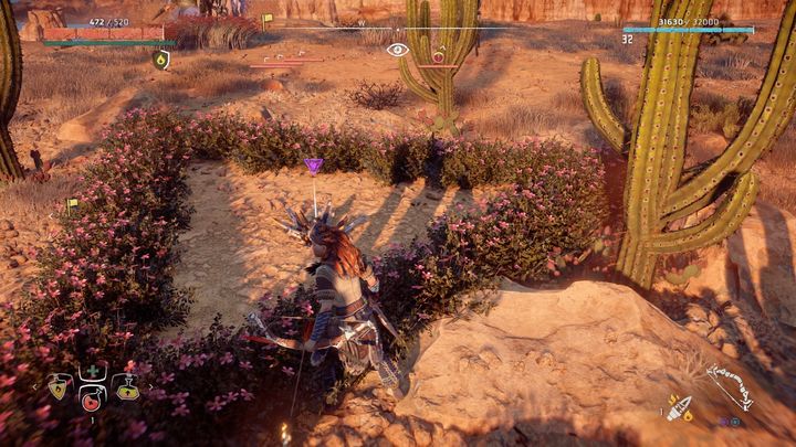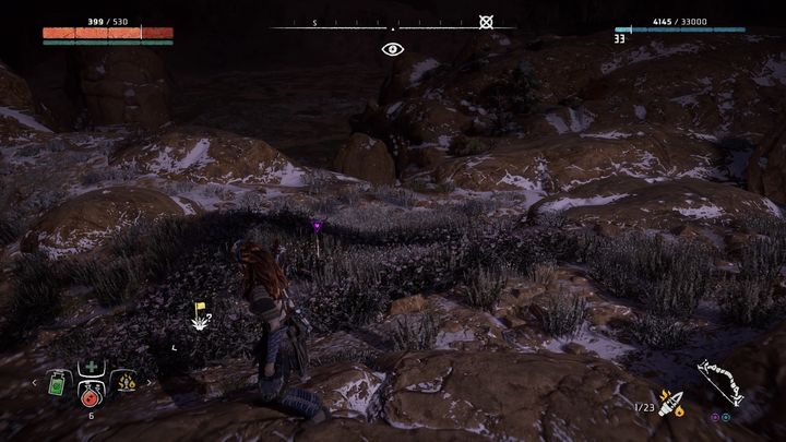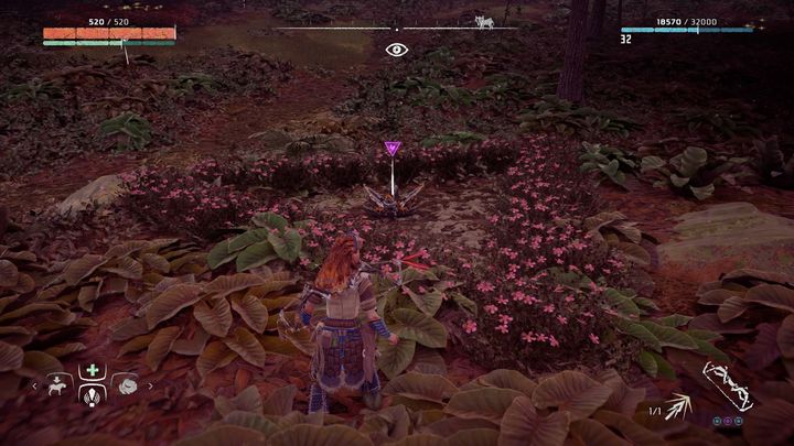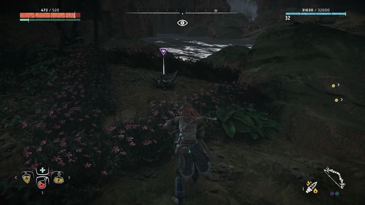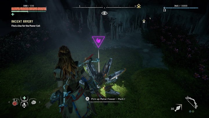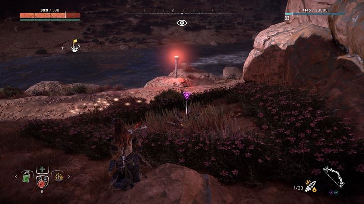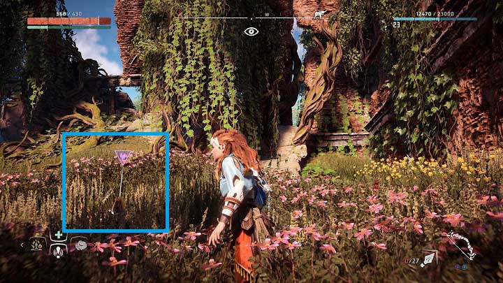 The flower can be found near the ruins. There shouldn't be any obstacles in the form of machines or difficulties in the access. Because of the use of colors for the environment, the marker can be harder to see in daylight but Focus can deal with it without any problems.