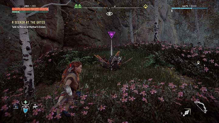 The flower is in the center of Glinthawks' nest. You can run to the treasure, grab it and use fast travel. There are a lot of machines here so fighting them all at the same time can be very difficult.