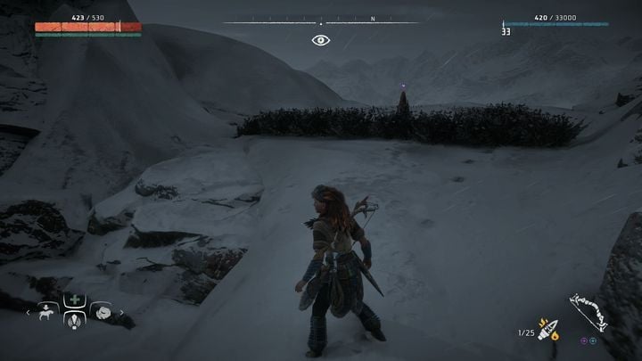 Go to the marker from the nearest campfire. You must climb the mountain chain nearby. There, use Focus. When you climb on the mountain, search for its highest point. In this case you should not pay attention to the marker's distance.