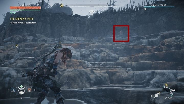 Near the dam there is a meadow with Broadheads. There you will find climbable rocks. Once you reach the top, you will find a large rocky path. Use it to reach the place with the rope. Pass to the other side and then climb twice.