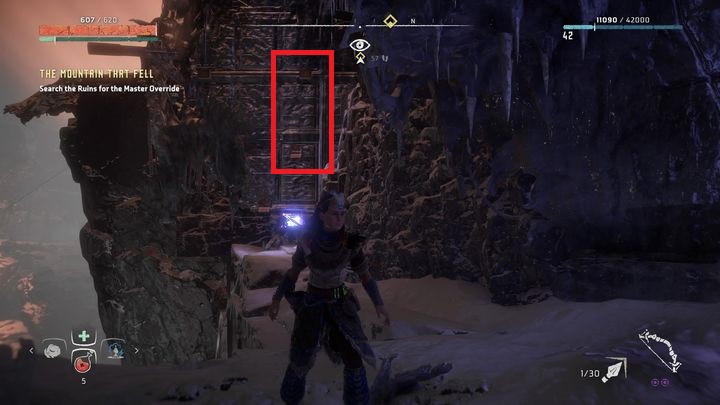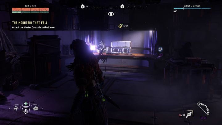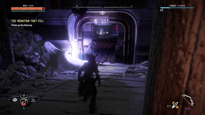 You will eventually reach the place presented in the screenshot. Use the rope to get to the lower level. There are two possible options: you can go right and follow the indicator, or head left. If you go left, you will quickly reach a chamber with another power cell, essential to complete Ancient Armory. You can go back or head to this place once you complete your quest.