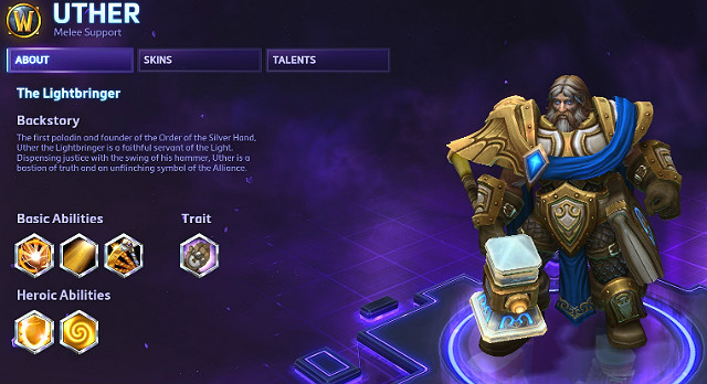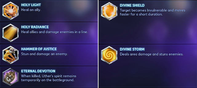 Uther is a character that can focus the enemy's attention and fight on the front line. Because of that, he can give his allies some time to prepare an attack. Try to keep an eye on the allies' health and heal them when they need it. Use the Hammer of Justice to stun the strongest enemy. Use the Divine Shield in the right moment to interrupt the enemy and make the predator become the prey.