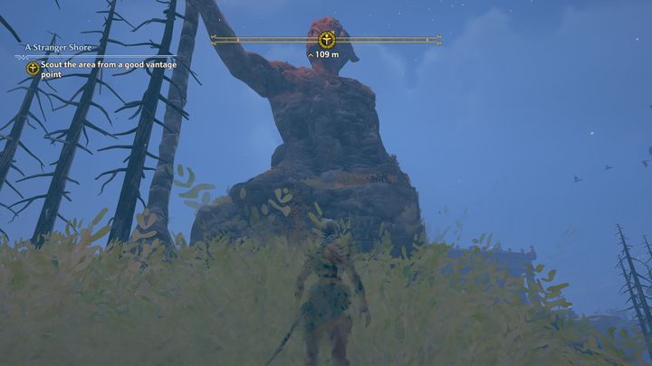 Afterwards, start to climb to the very top of the nearby statue to have a good vantage point. It is a good idea to take a few breaks during the climb, since your maximum stamina at the beginning of the game is very low.