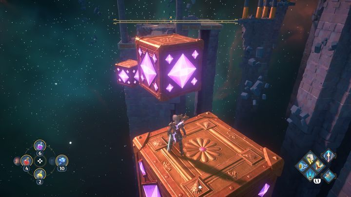 When the sphere finds itself in its proper place, you will create more cubes. To the right of the checkpoint you will find a chest, fly towards it to obtain the rewards (see the attached image).
