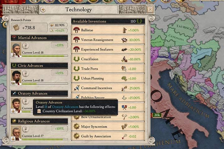 Technological progress is one of the main factors when it comes to the development of the state in Imperator: Rome.