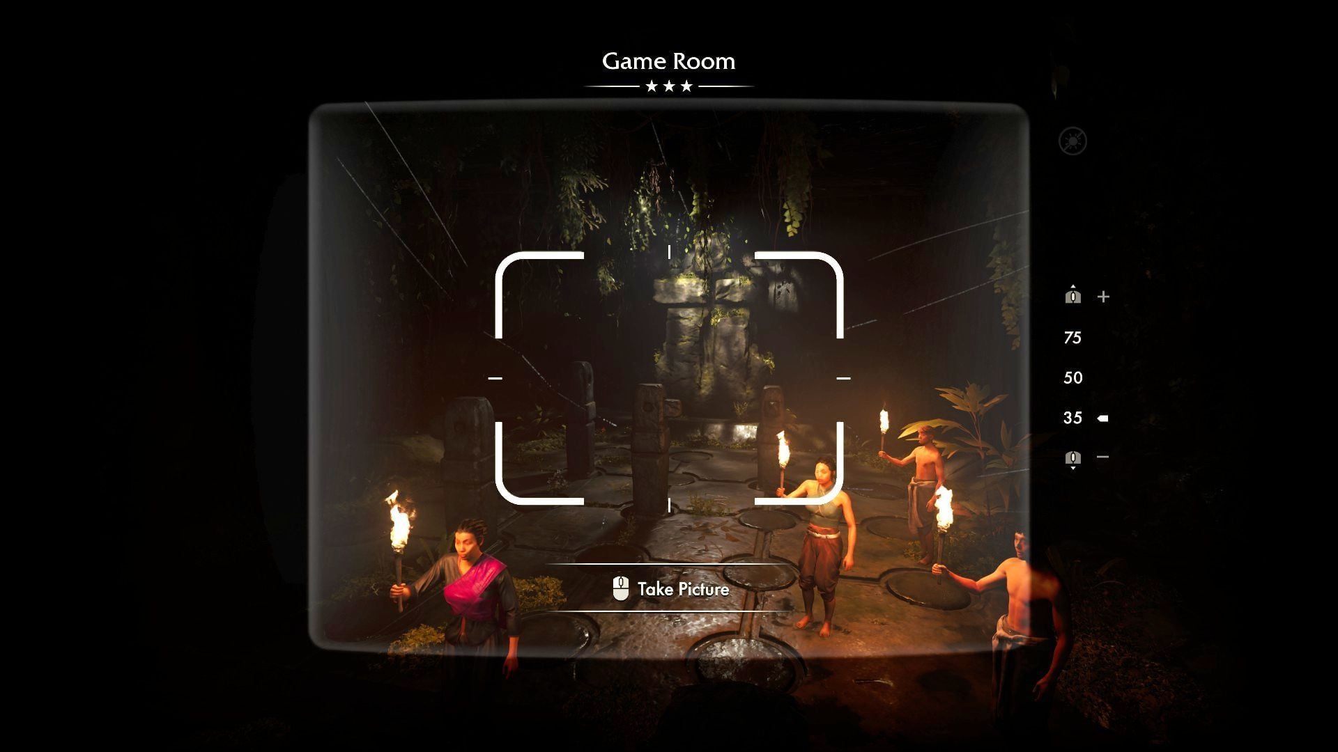 - You will reach the Game Room shortly after giving Gina the torch and using the whip. A cutscene will trigger here. Indiana will bring people from the village to this location; their help will be essential to winning the Nephilim game. You can also take photos of the room.